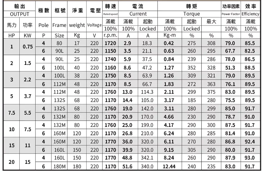 3HP2.2KW+VP30/VP40 花鍵 4HP3KW+VP30/VP40 5HP3.75KW+VP30