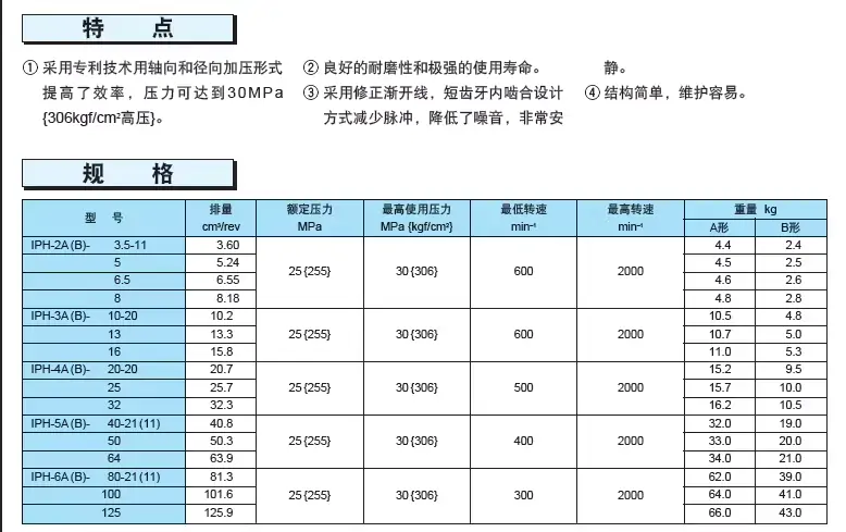 大蘭液壓常用液壓泵主要性能