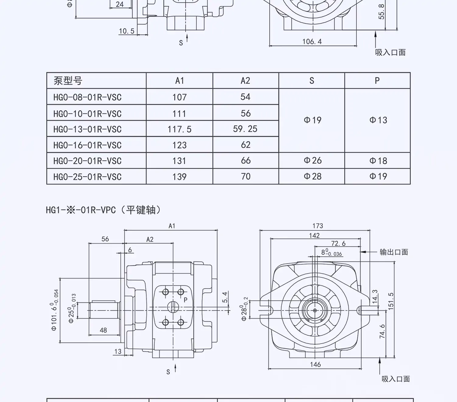 • 油口(從軸端看):吸油口(P):上(A)壓油口(T):上(A)