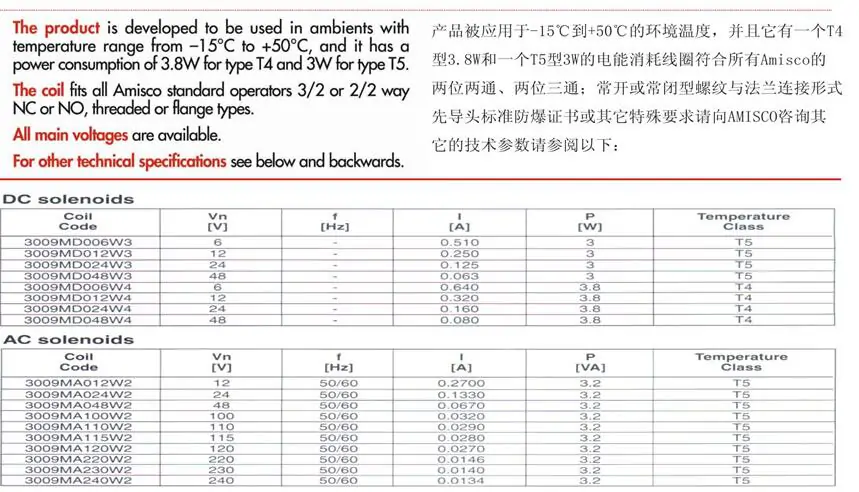 意大利AMISCO防爆線圈3009MD024W3 U=24 VDC/220 VAC