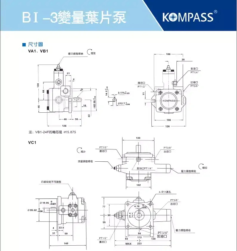 KOMPASS康百世葉片泵VFA1-12/15/20/25F-A1油泵VFD1-30F/40F-A3