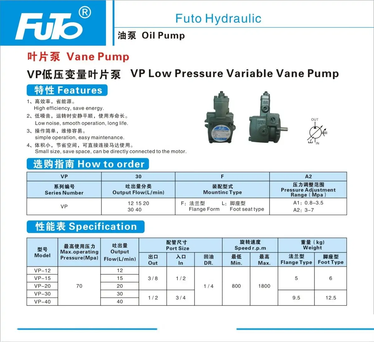 FUTO液壓泵VP20-FA3變量葉片泵VP-15油泵VP30 VP40-FA3 VP12/8